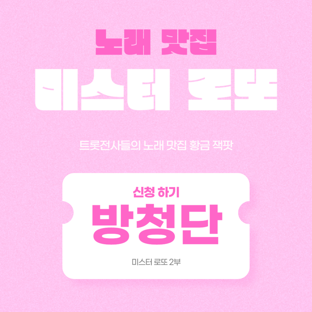 미스터 로또 방청단을 모집합니다. 신청은 2024년 6월 09일 오후 05:27 ~ 2024년 6월 28일 오전 12:00까지입니다.