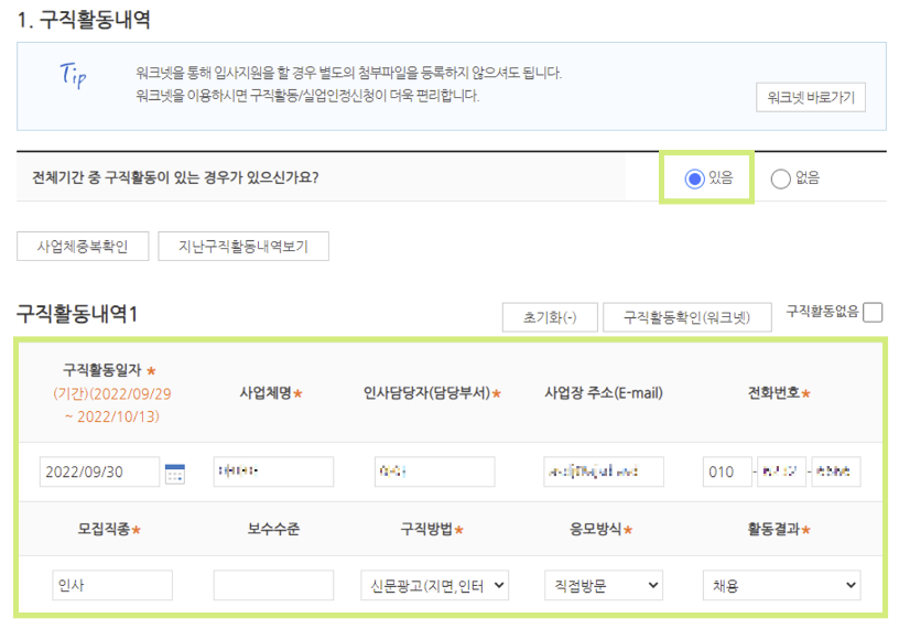 3. 실업급여 인터넷 신청서 작성을 합니다. - 1