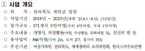 현 자료는 전라북도청에서 공개한 새만금 섹잼버리 성공개최 준비 파일에서 확인하여 포스팅하였습니다.