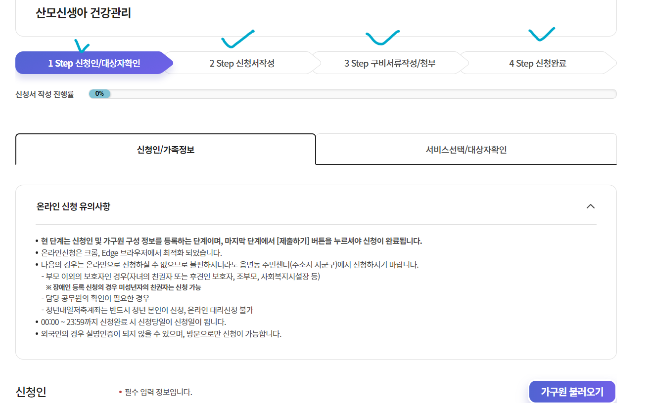 먼저 '가족관계증명서, 출산예정일 증빙자료'를 준비해 주세요! 그래야 신청 가능합니다!