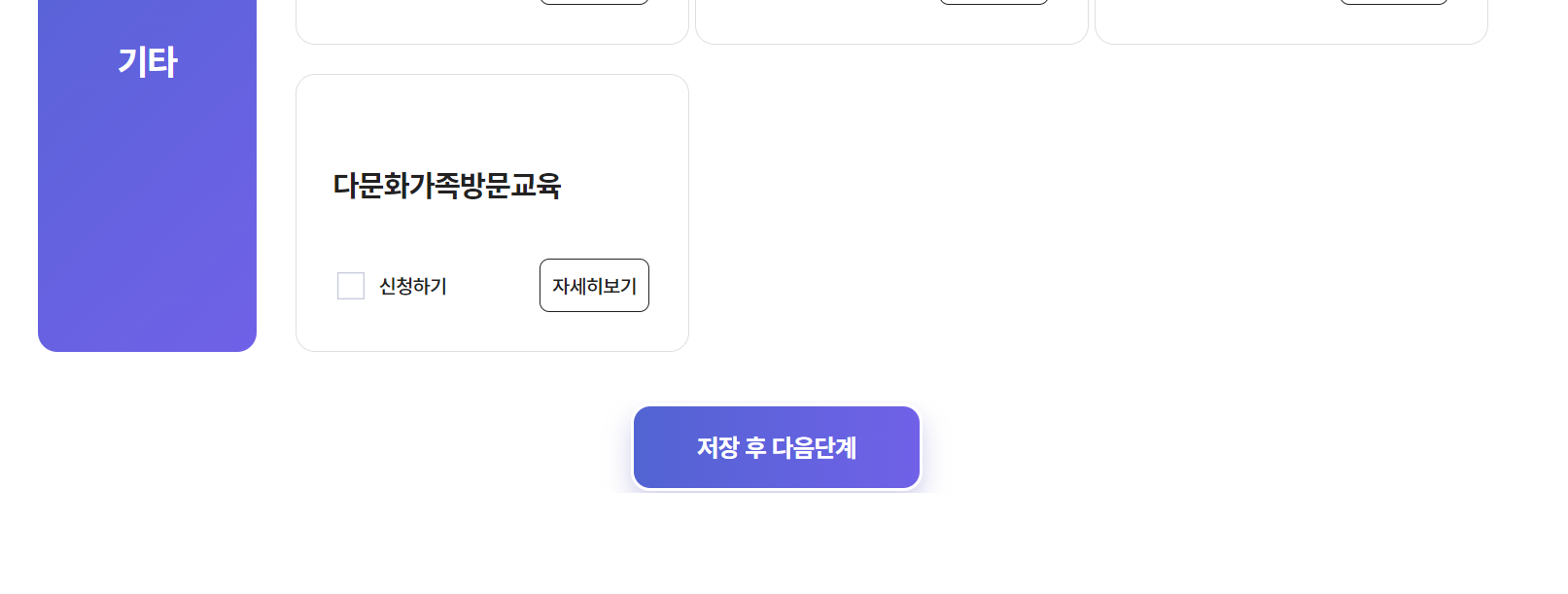 산모신생아 건강관리에 신청하기를 클릭한 후 하단 스크롤을 내려보면 저장 후 다음단계 버튼이 있습니다.