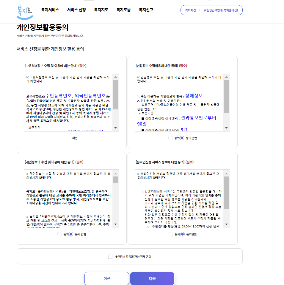 해당 개인정보활용동의를 동의해 준 뒤 다음단계로 넘어가면 됩니다!
