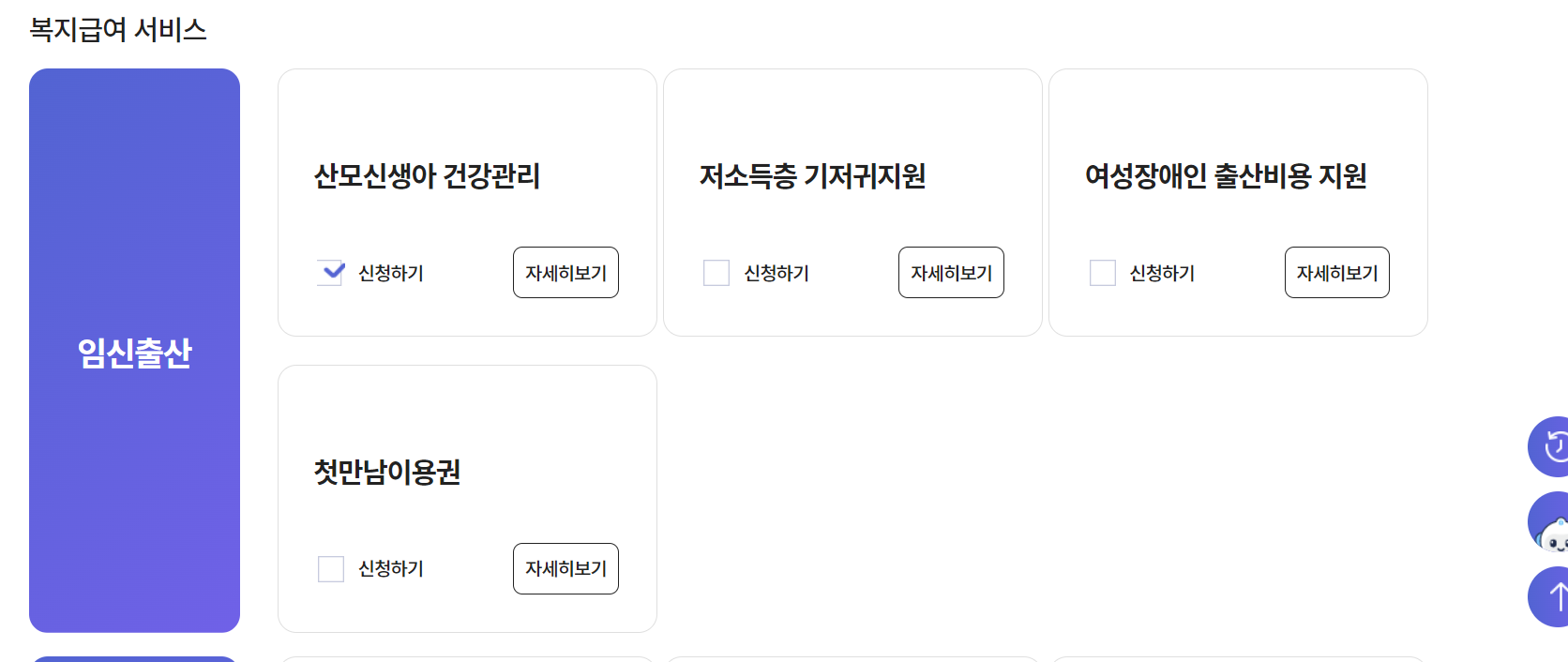 로그인 후 복지서비스 - 산모신생아건강관리 들어가시면 신청 전 단계가 나옵니다.