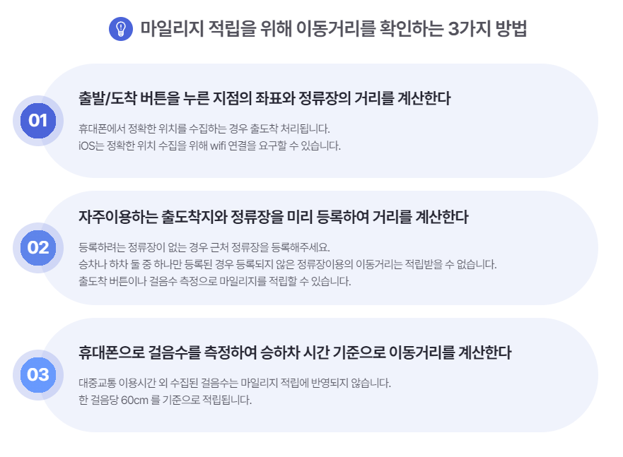 | 기본 마일리지 | 이동거리에 비례 | 최대 금액 지급 |