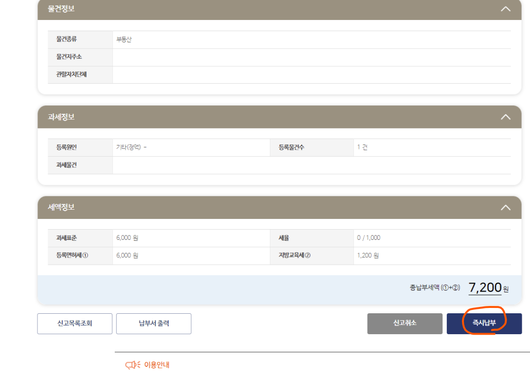 4. 즉시납부를 클릭하여 납부 완료를 합니다.