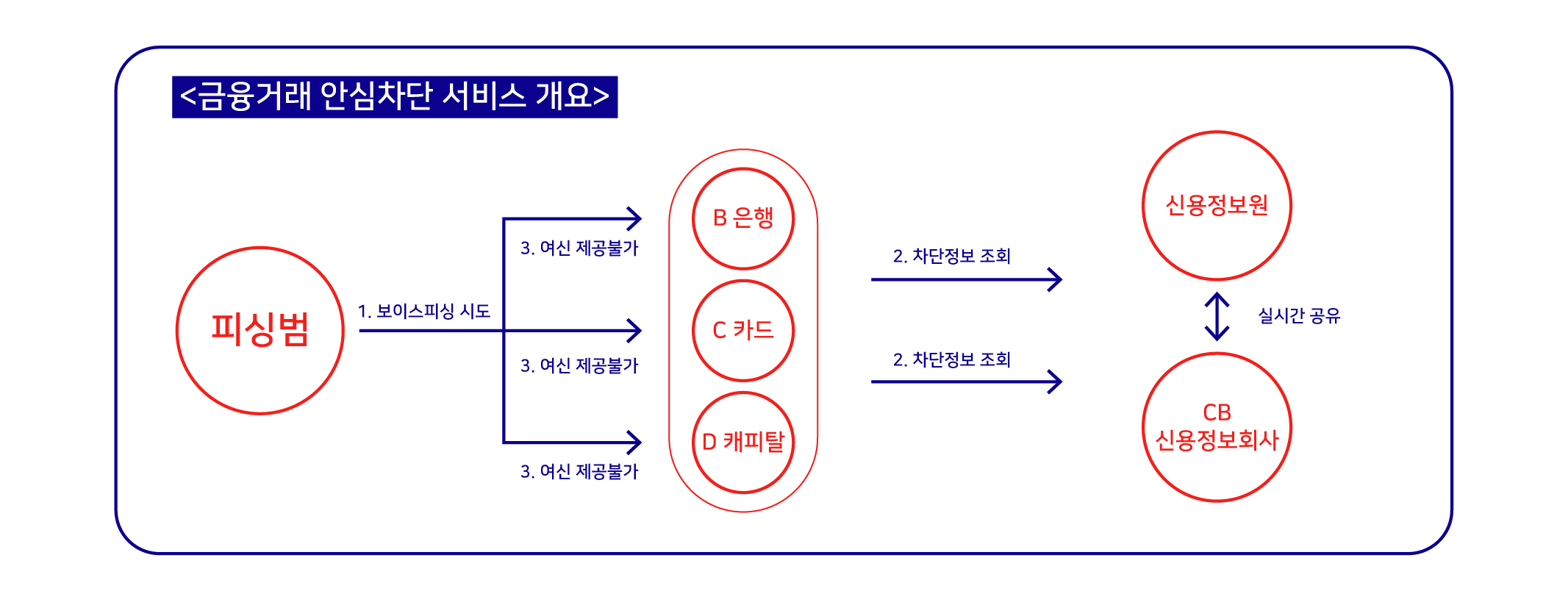 피싱범의 보이스피싱 또는 신용대출 등의 여신거래를 소비자가 사전 차단할 수 있는 시스템을 구축하는 것을 목표로 모든 금융권에 소비자가 신청한 금융거래 사전차단 정보를 공유, 활용할 수 있도록 감독규정을 개정하였습니다.