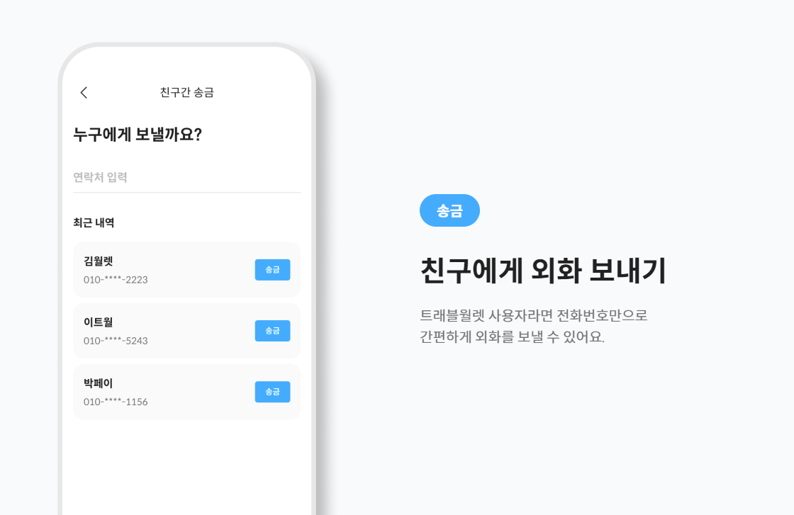 트래블월렛은 친구끼리도 외화를 보내기가 가능합니다.