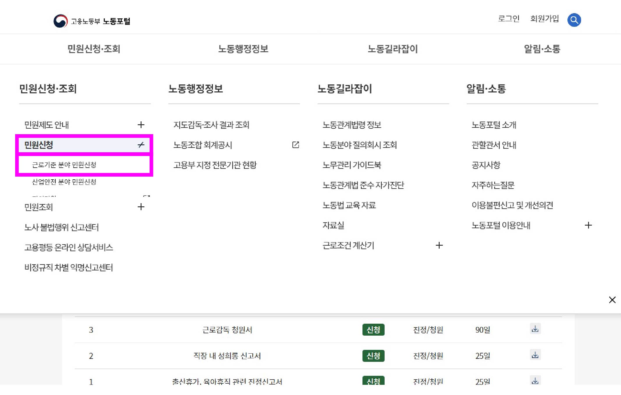 고용노동부 노동포털 홈페이지의 상단 메뉴 민원 신청, 조회에서 온라인으로 임금체불 진정을 제기하거나, 사업장 소재지 관할 지방고용노동관서 고객지원실을 방문하여 사전 상담 후 진정 또는 고소할 수 있습니다.