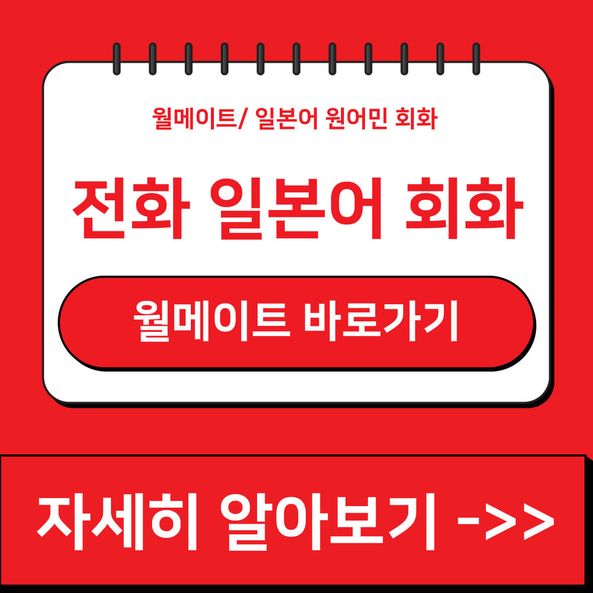 JLPT공부 하시면서 또는 일본어 회화를 잘하고 싶어서 공부하시는 분들 중에 일본어 원어민과 회화를 할 수 있는 방법을 많이 찾으셨을 겁니다. 오늘은 일본어 회화 공부법중 전화 일본어 회화가 가능하고 만명의 학생들이 선택한 대표적인 월메이트에 대해서 알려드리겠습니다.