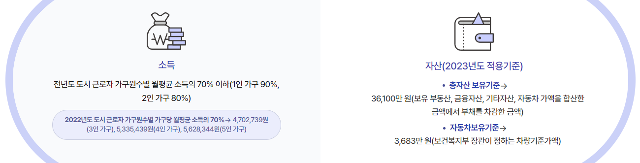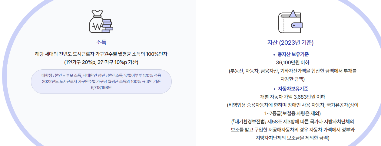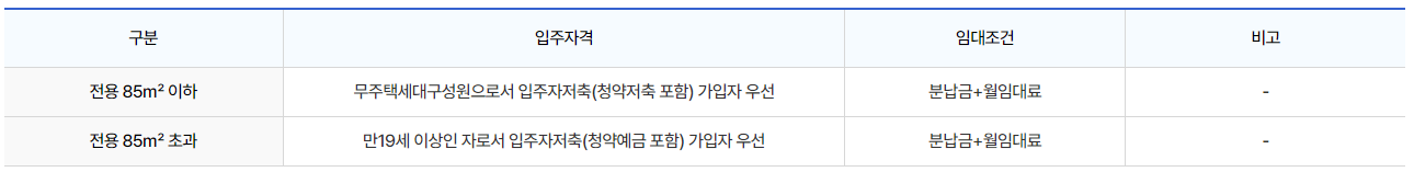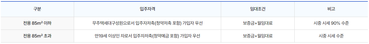 ● 입주자격 : 무주택자, 하단 소득 및 자산 보유 기준에 해당하는 자