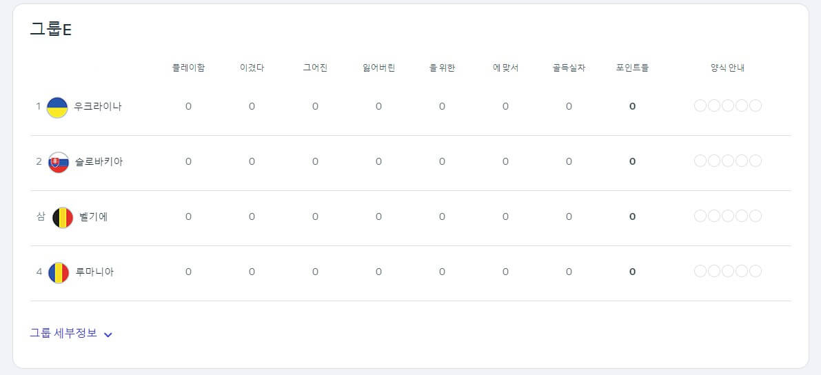 22:00 | 그룹 E 루마니아 vs 우크라이나 |