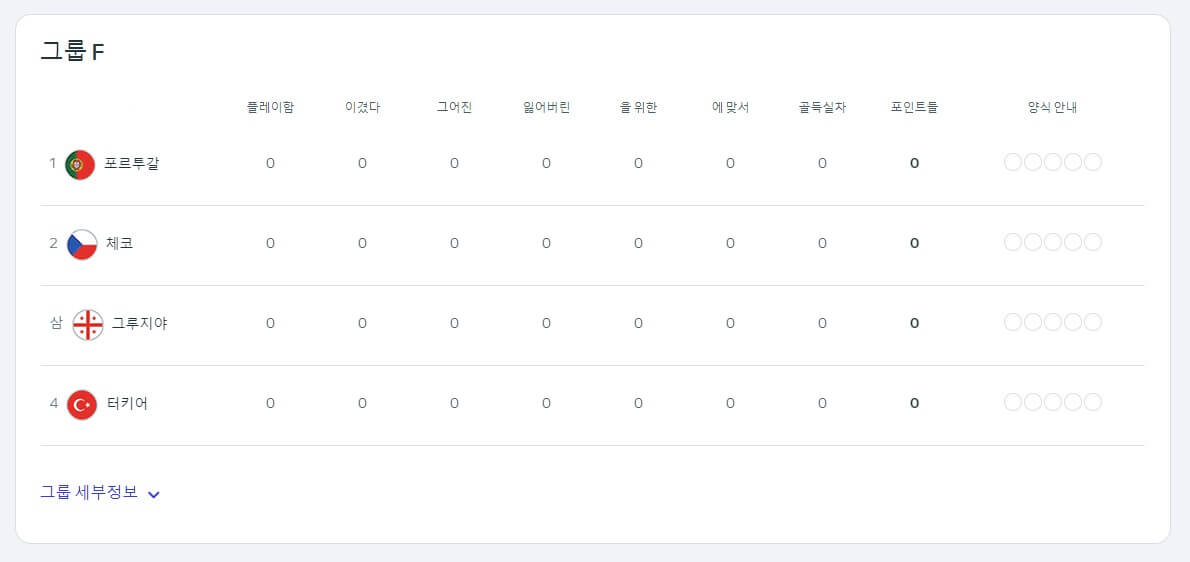 | 04:00 | 그룹 F 그루지야 vs 포르투갈 |